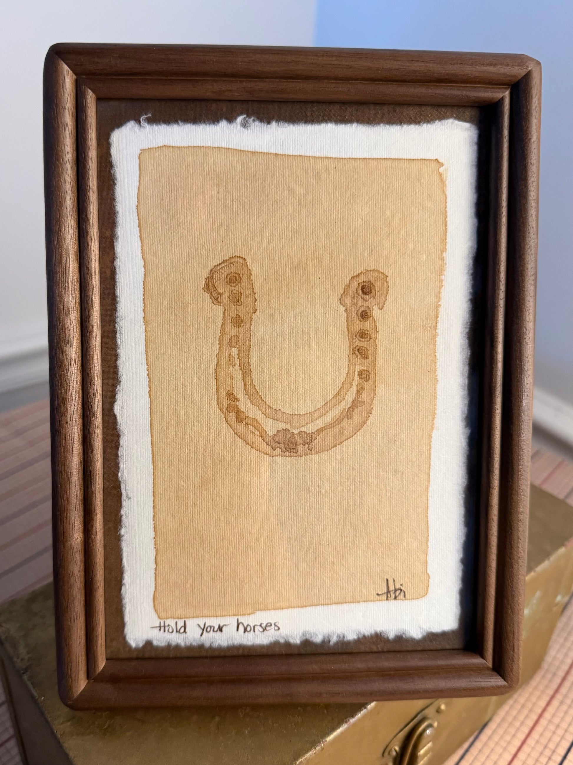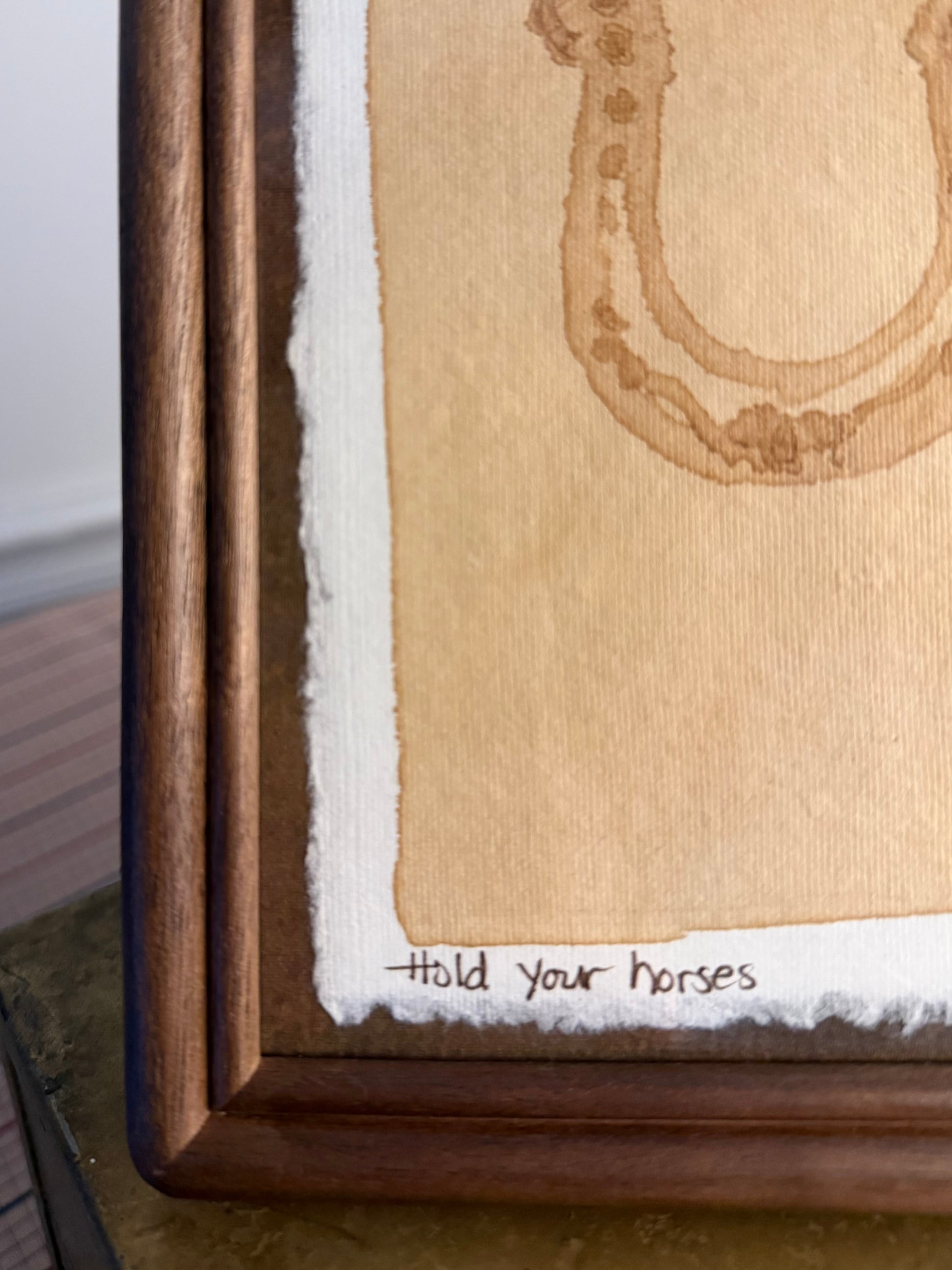 "Hold Your Horses" | Horseshoe | 4x6 Coffee Painting