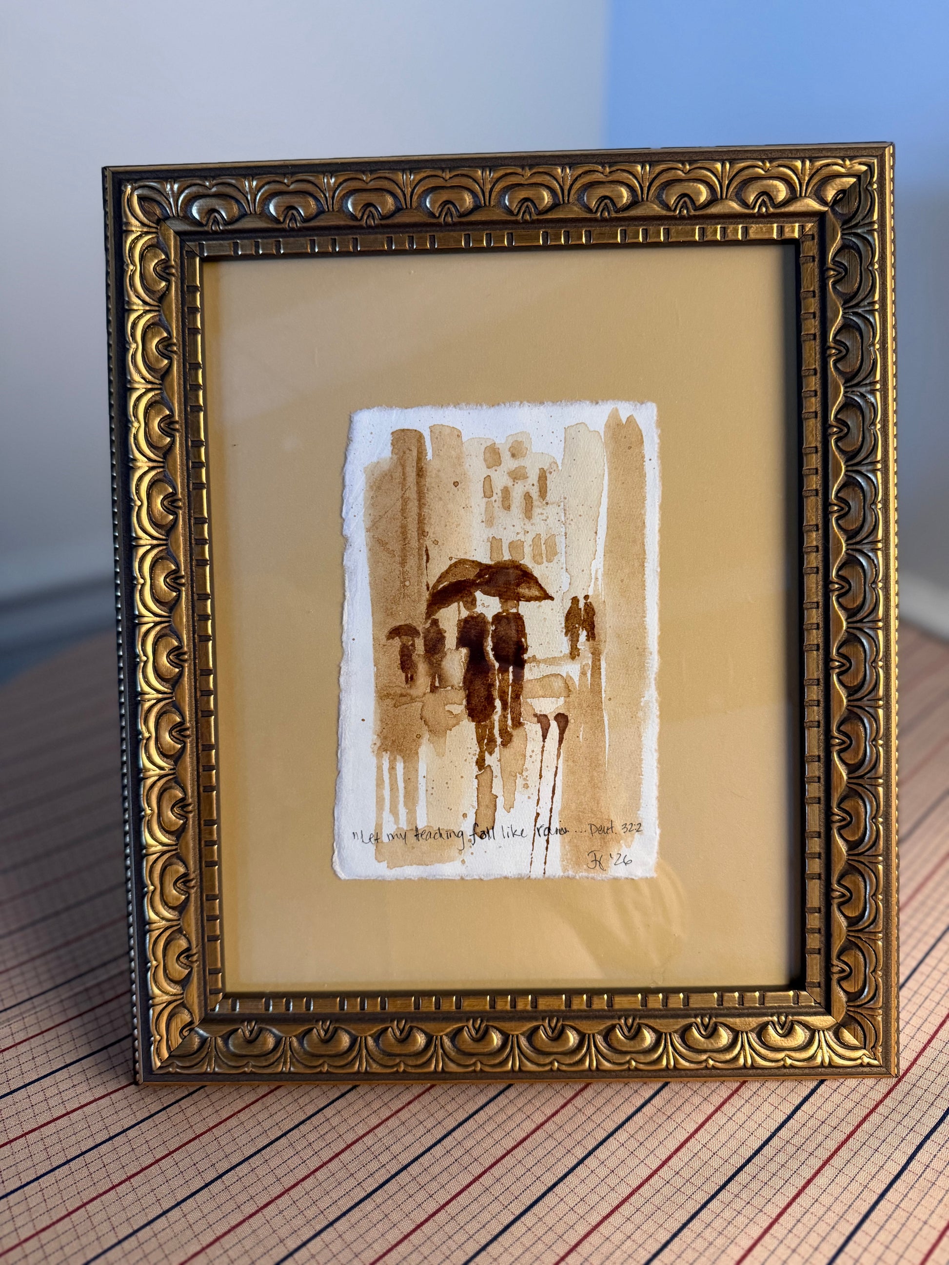 Due to the nature of coffee as a medium, subtle variations in tone and texture are expected and make each piece uniquely one-of-a-kind.