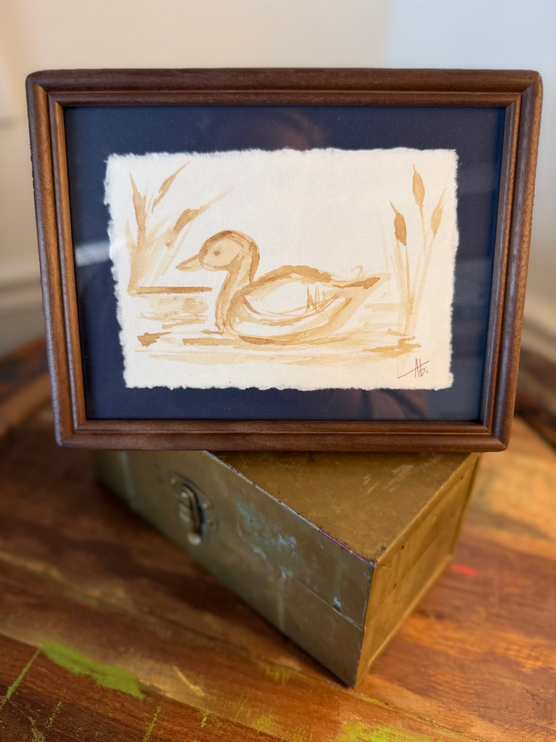 Your original painting arrives float-matted in a 5x7 natural solid walnut wood frame, complete with handcrafted rounded corners and high-tempered glass. The float matting highlights the deckled edge, allowing the texture and artistry of the paper to remain visible — an intentional detail that elevates the piece while preserving its handmade integrity.
