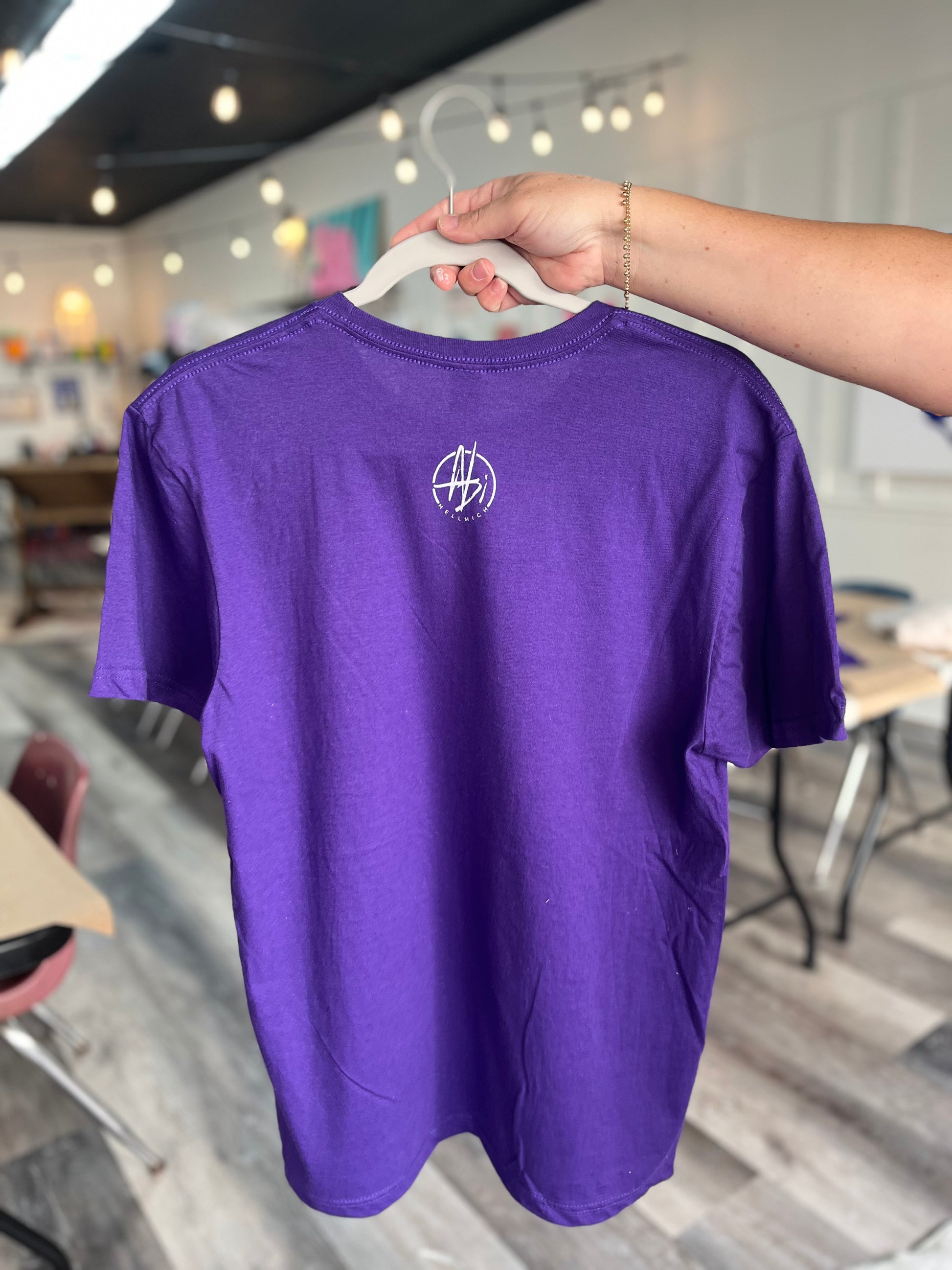 Make a bold statement with the Golden Tornado Tee, featuring Abi’s original hand painted design printed on a vibrant purple Gildan Soft Style T-shirt.